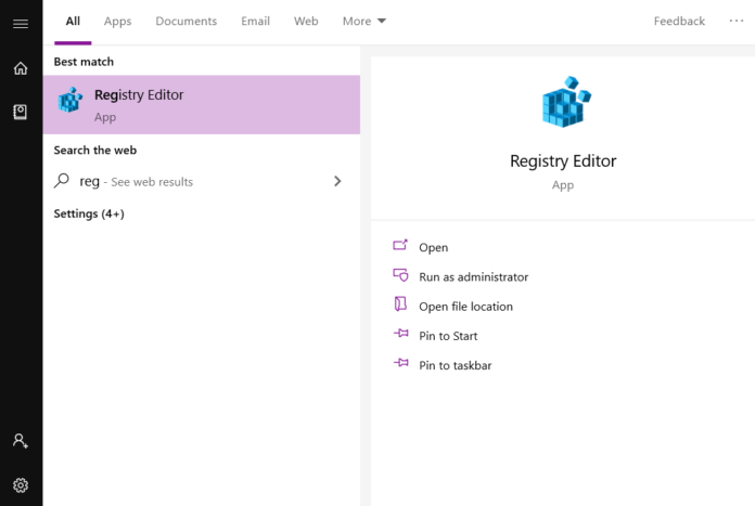 1. Input ‘Registry Editor’ in the start menu and open it.