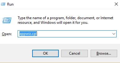1. Press the windows and R key to open Run command. Input ‘appwiz.cpl‘ in the run command and click ‘OK’.