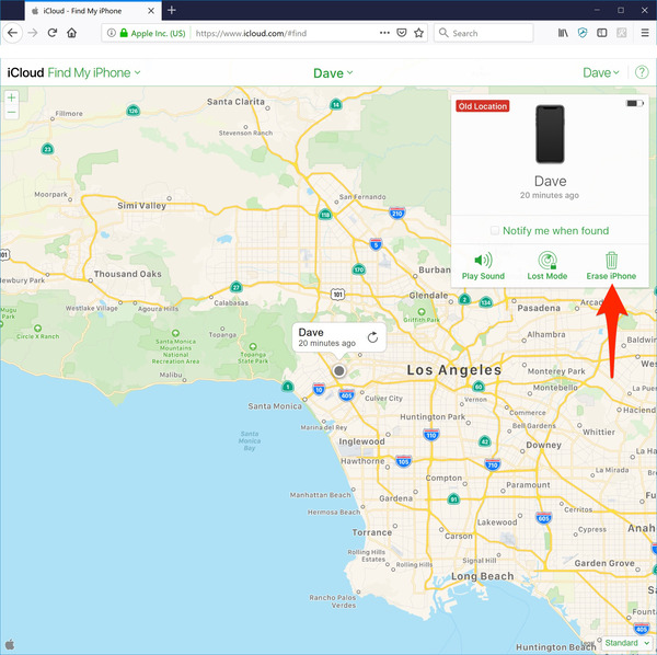 - After your old device got erased tap on remove account. And your old device will disappear from your Find My iPhone screen.